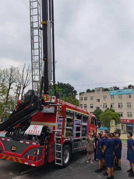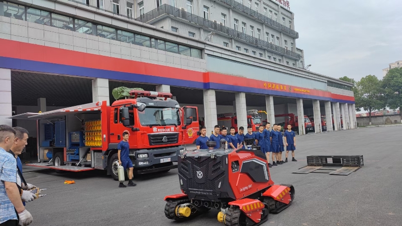2022年6月末公司領導及銷售經理帶著公司兩款主打產品——舉升搶險主戰消防車和全地形消防滅火機器人在重慶總隊、貴陽總隊及各支隊進行巡展演示。