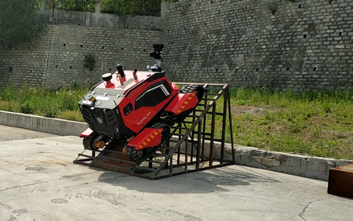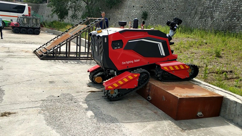 在驗收現場,根據山東消防救援總隊提出的驗收標準,與同行競品分別進行了垂直越障、S型行走、45度爬坡、單邊橋行進、拖拉水帶行走、射水距離、夜間盲操等性能測試。